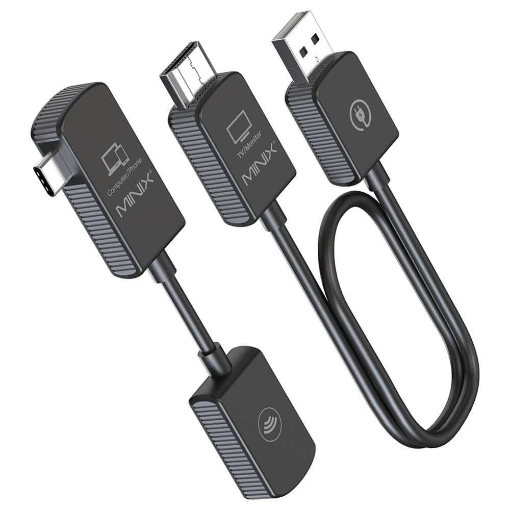 The MINIX C1 USB-C to HDMI Wireless Dongle is a compact streaming adapter that allows users to wirelessly transmit video and audio from USB-C-enabled devices, including the iPhone 15, to any HDMI display such as TVs, projectors, or monitors. With a transmission range of up to 165 feet (50 meters) in open space, it eliminates the need for physical cables while maintaining stable, high-quality output. Designed for simplicity, the device supports plug-and-play functionality—no drivers or apps required—making it an efficient solution for quick setup in meetings, classrooms, or home entertainment.