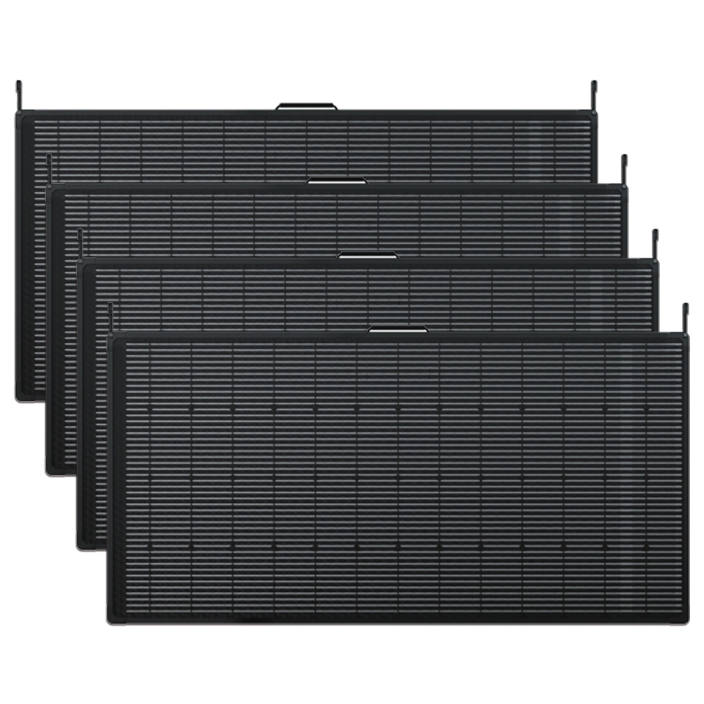 The set includes four 180W panels, delivering a total potential output of 720 watts when connected and operating under optimal sunlight conditions.