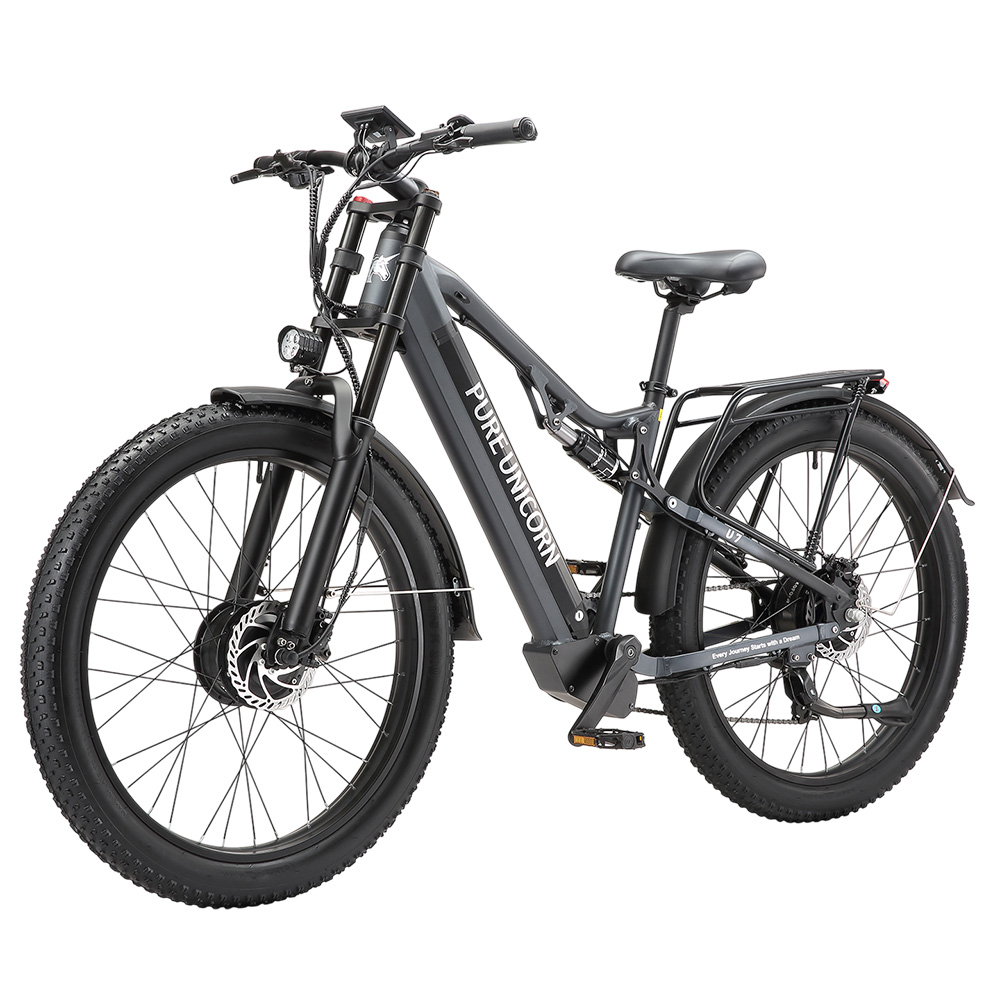 The PURE UNICORN U7 Electric Bike 1000W*2 48V 19.2Ah is a high-performance electric mountain bike engineered for power and endurance. With dual 1000W brushless motors and a 48V 19.2Ah lithium-ion battery, it delivers exceptional speed and range. Designed for riders seeking a rugged, versatile e-bike, the U7 handles urban streets, gravel paths, and mountain trails with confidence. Its robust build and smart features make it a standout in the premium e-bike category.