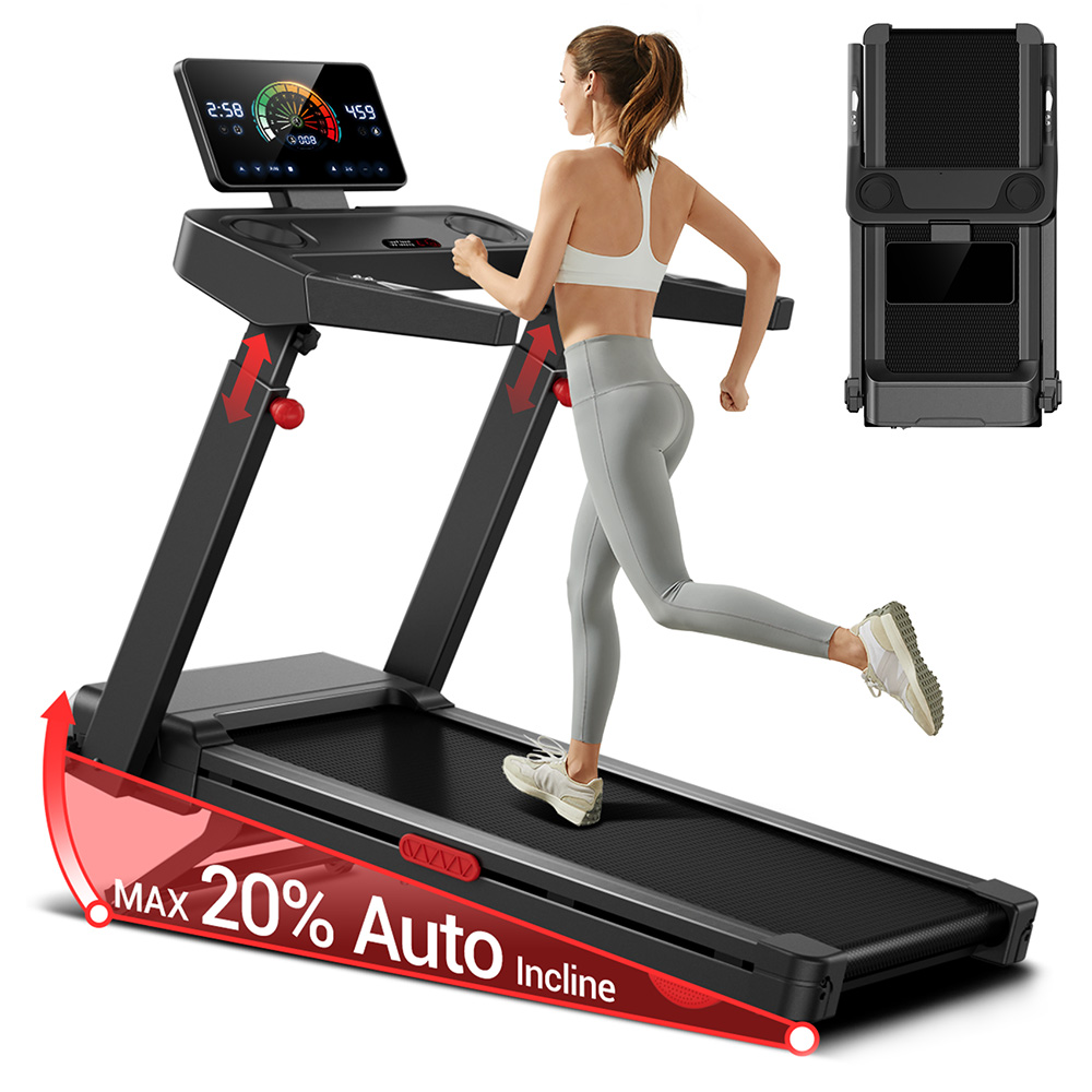 ROBORE L10 Foldable Treadmill with 20% Incline is a high-performance fitness machine featuring a 3.5HP brushless motor, 20-level auto incline, and space-saving foldable design. Priced at $451.81, it's ideal for home users seeking quiet, joint-friendly cardio workouts with real-time tracking and strong durability.