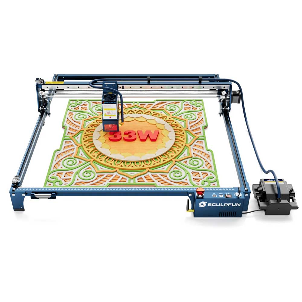 The SCULPFUN S30 Ultra 33W Laser Graveur Cutter EU Plug is a high-power desktop laser engraver with a 600x600mm work area, priced at $699.99. Featuring 33W laser power and auto air-assist, it's ideal for cutting thick wood and acrylic in one pass, suited for makers and small workshops.