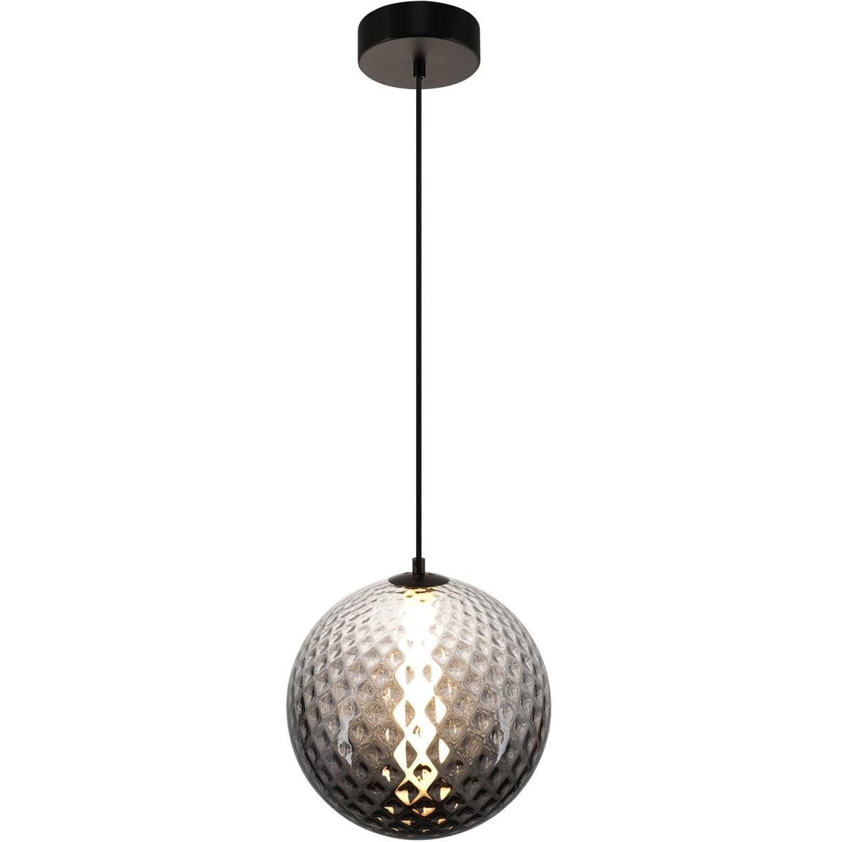 The Artcraft AC6940SM Celeste LED 11.8 inch Gunmetal Pendant Ceiling Light in Smoke Ombre is a modern integrated LED pendant from Artcraft Lighting's Celeste collection. It combines a diamond-patterned smoke ombre glass shade with gunmetal metalwork to create layered illumination: a focused downward beam through a bottom peek-hole aperture and ambient side glow from an internal white tube. Designed for 120V residential applications, it ships ETL-rated for dry locations with all LED components pre-installed.