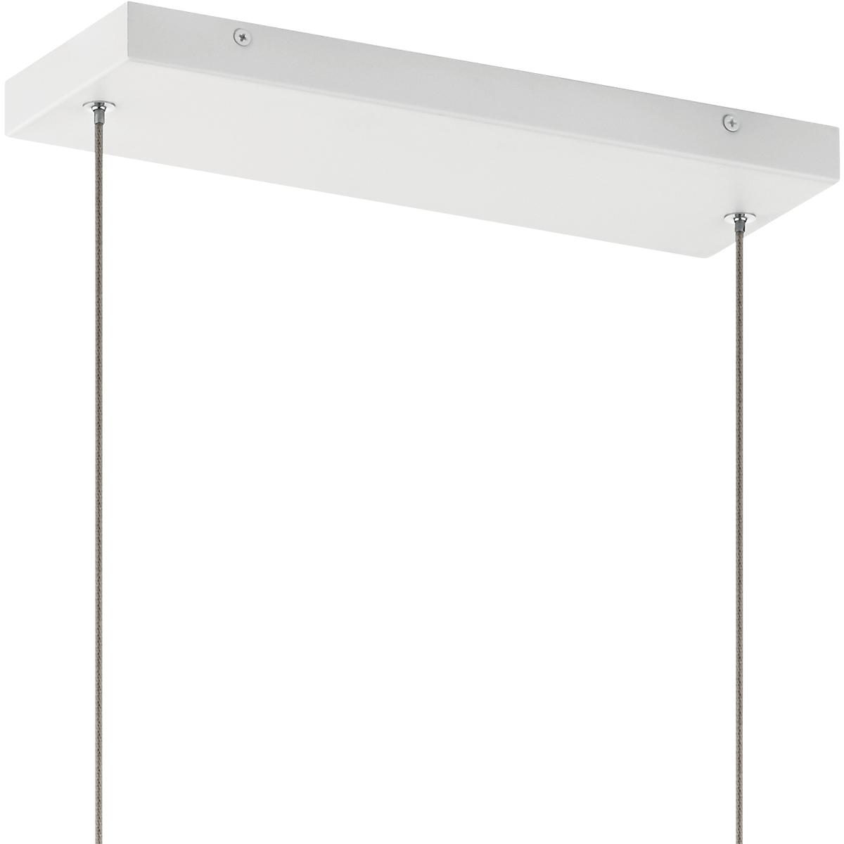 The Elan 84051WH Vega LED chandelier is a 38-inch linear suspension fixture from Kichler's Elan collection, featuring three integrated LED modules housed in a white-finished steel frame with clear acrylic diffusers. Designed for contemporary and transitional interiors, it delivers focused downlight and ambient illumination over kitchen islands, dining tables, and linear work surfaces where traditional multi-bulb chandeliers prove too ornate or spatially inefficient.