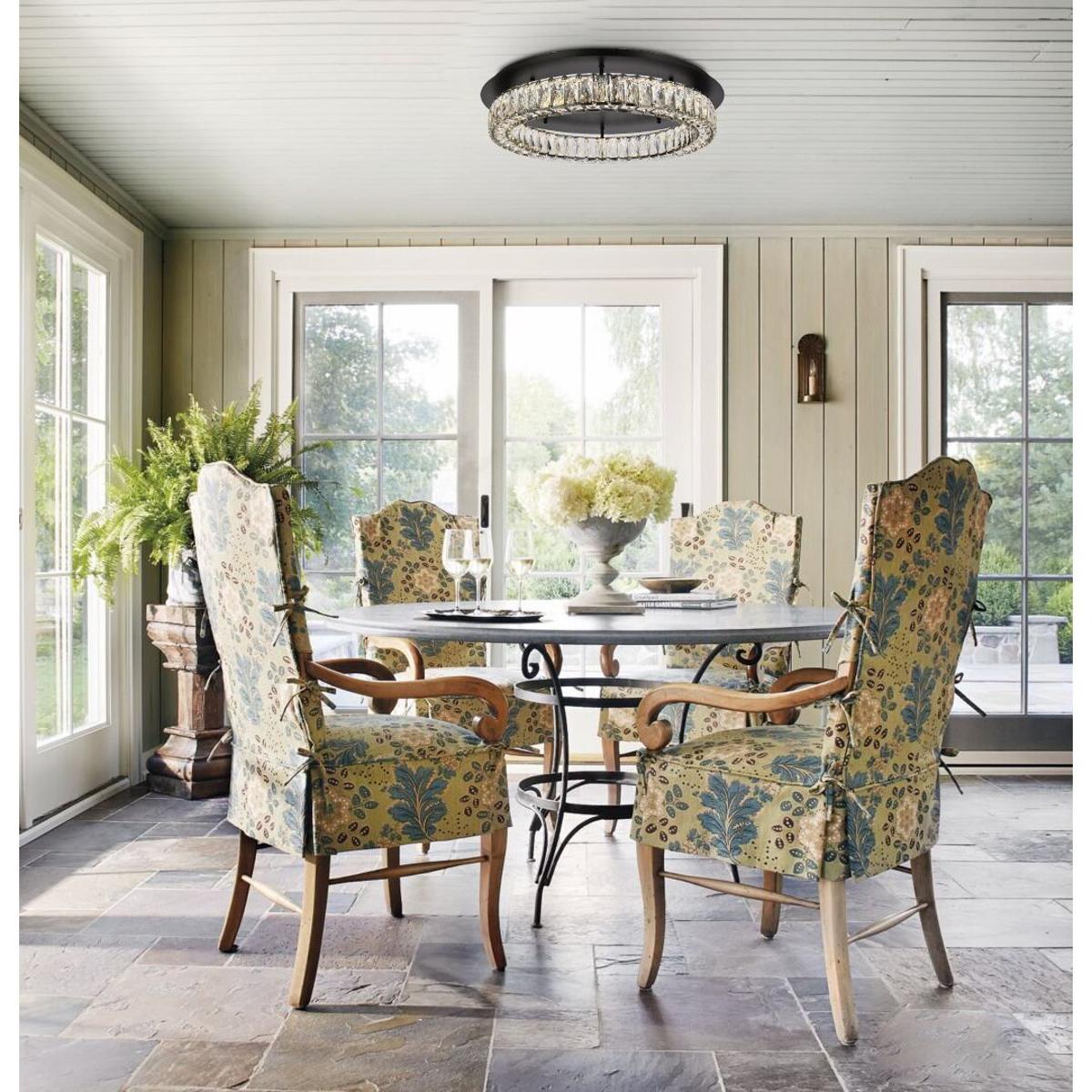 The Elegant Lighting 3503F26BK Monroe is best for homeowners renovating formal dining rooms, master bedrooms, or living areas who prioritize visual impact and modern design. Its 26-inch footprint and 24-pound weight require rooms at least 12 by 12 feet and properly supported electrical boxes. The $944 price reflects Royal Cut crystal quality and integrated LED convenience, but buyers needing bathroom lighting or preferring replaceable bulbs should consider alternatives like Kichler or Quoizel flush mounts in the $400–$600 range with modular sockets.