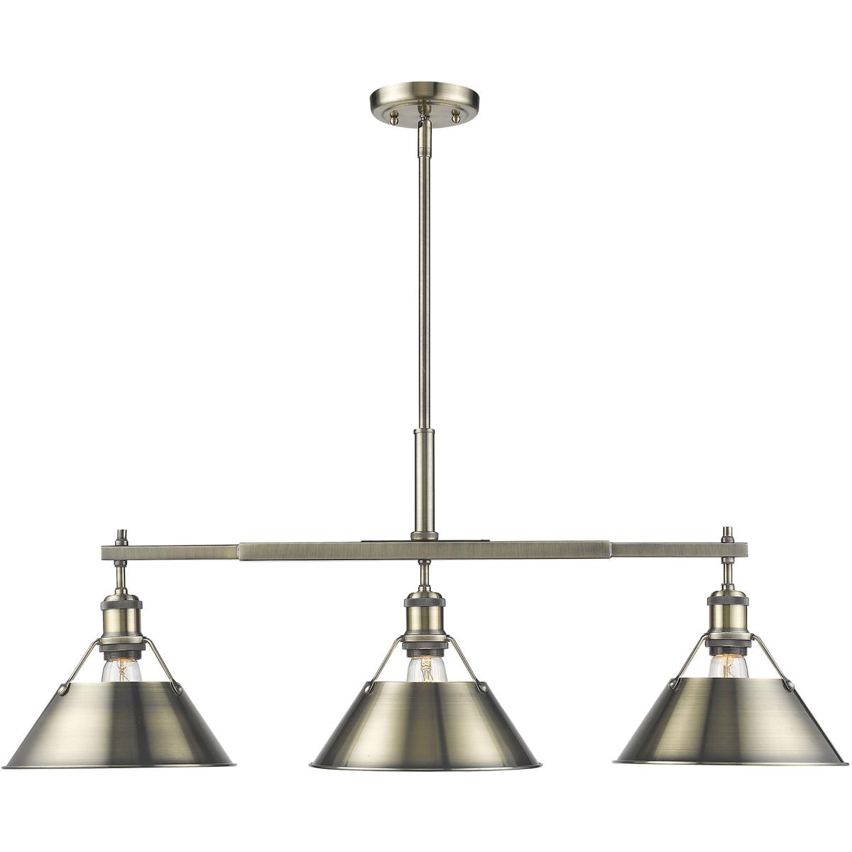 The Golden Lighting 3306-LP BCB-CH Yep Orwell Island Light Ceiling Light blends contemporary design with industrial elegance. Measuring 35.75 inches wide, this ceiling fixture features a dual-tone finish of Chrome and expertly applied Brushed Champagne Brass over durable steel construction. Designed for dry locations, it delivers bright, functional lighting ideal for kitchen islands, breakfast nooks, or dining room tables. The fixture requires three 100-watt E26 A19 bulbs (not included) and operates at 120 volts, making it compatible with standard U.S. electrical systems.