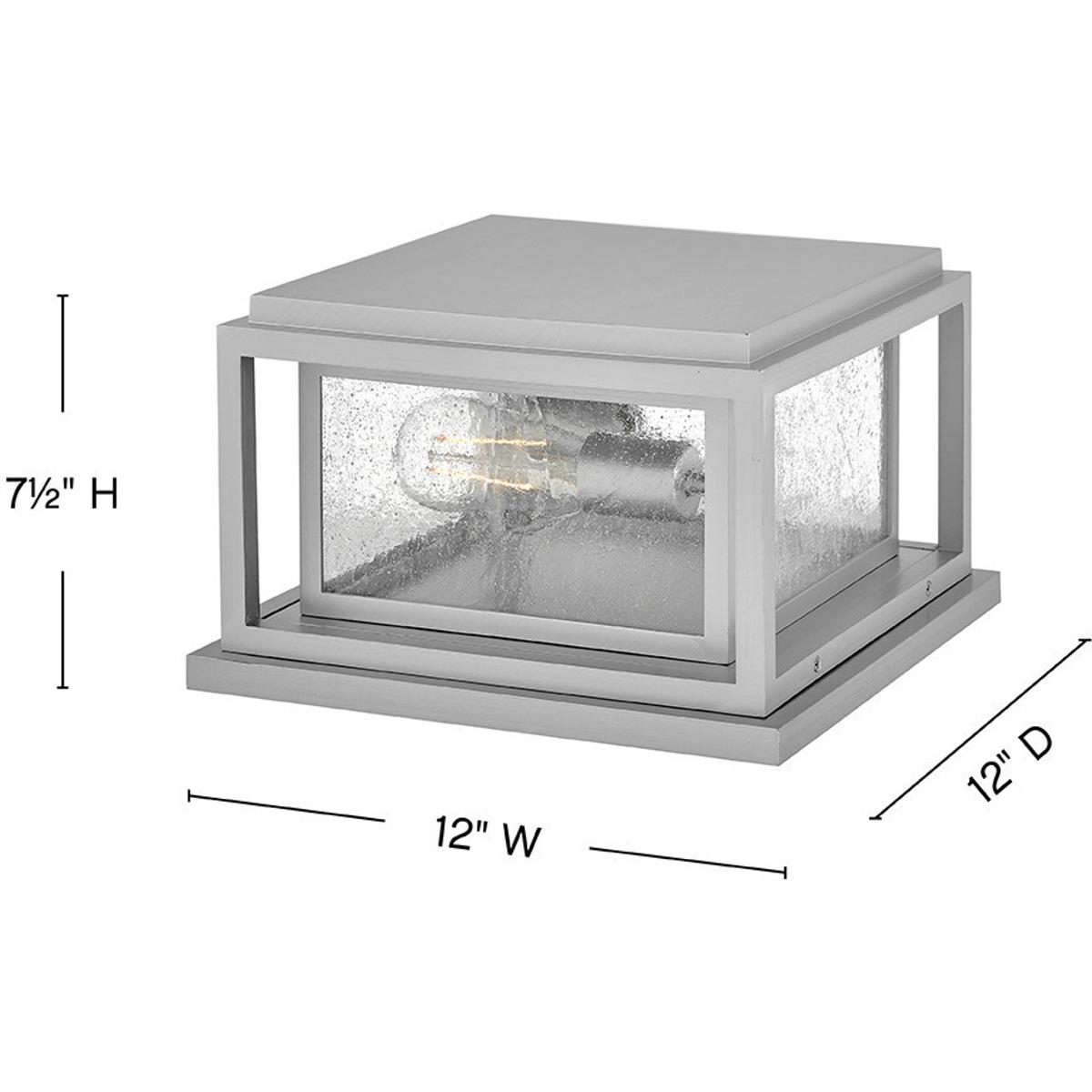 The Hinkley 1008SI Coastal Elements Republic 2 Light 12 inch Satin Nickel Outdoor Pier Mount, Estate Series is a weather-resistant outdoor lighting fixture designed for pier and post applications on residential estates, driveways, and coastal properties. Manufactured by Hinkley Lighting (family-owned since 1922), it combines composite material construction with anti-fading finishes engineered to withstand harsh climates including salt air, UV exposure, and temperature extremes. The fixture features a rectangular open-frame design with clear seedy glass panels and accommodates two medium-base LED bulbs rated at 8 watts each.