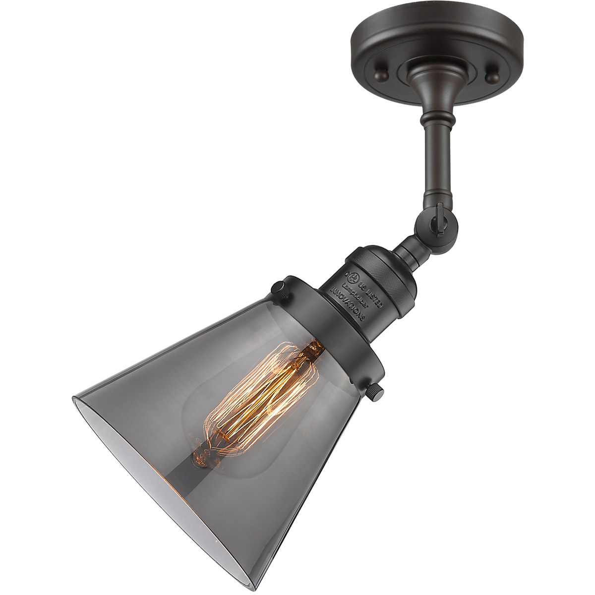 About Innovations Lighting Innovations Lighting 201F-OB-G63 Franklin Restoration Small Cone 1 Light 6 inch Oil Rubbed Bronze Semi-Flush Mount Ceiling Light in Plated Smoke Glass