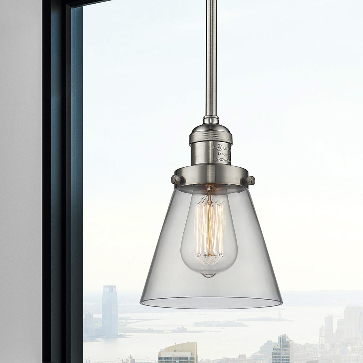 About Innovations Lighting Innovations Lighting 201S-SN-G62 Franklin Restoration Cone 1 Light 6 inch Brushed Satin Nickel Mini Pendant Ceiling Light in Incandescent, Clear, Fran