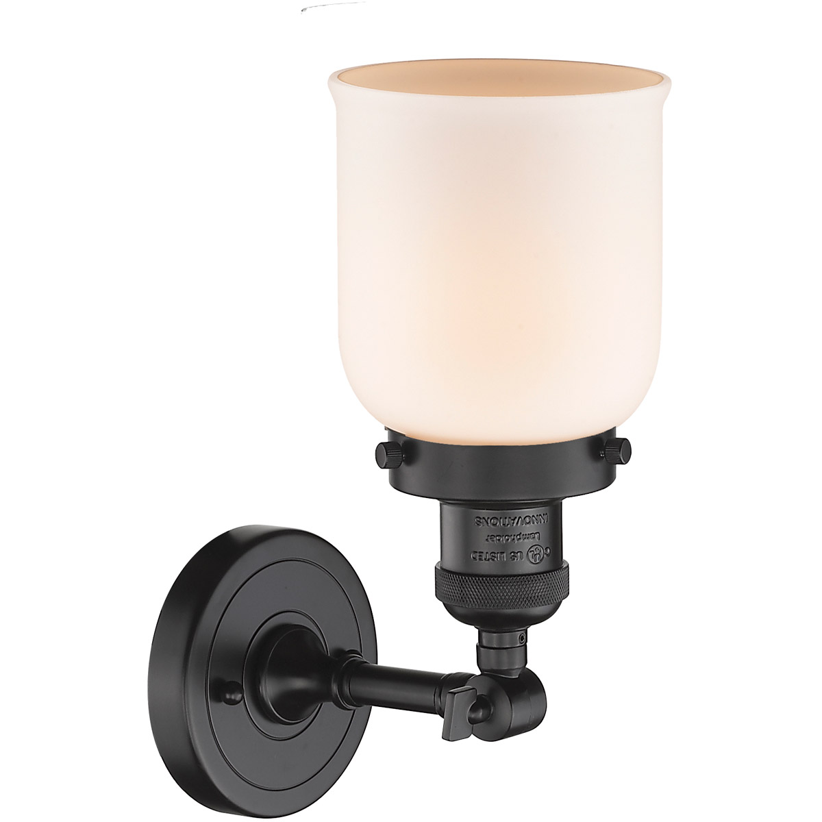 About Innovations Lighting Innovations Lighting 203-OB-G51-LED Franklin Restoration Small Bell LED 5 inch Oil Rubbed Bronze Sconce Wall Light in Matte White Glass, Franklin Rest