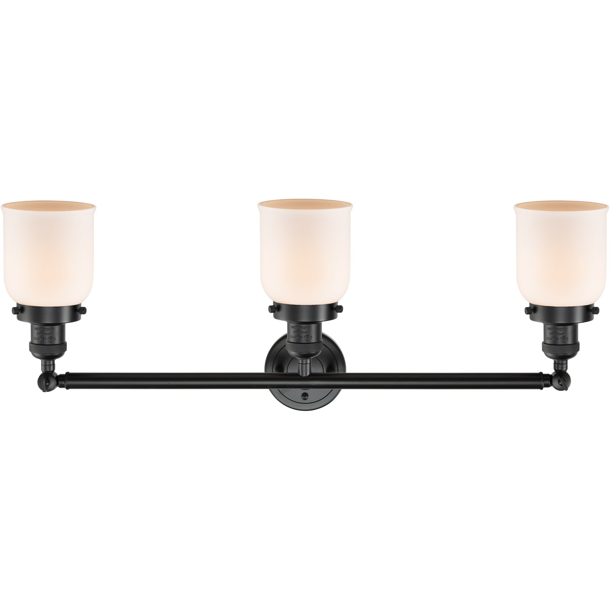 The Innovations Lighting 205-OB-G51-LED Franklin Restoration Small Bell LED 30 inch Oil Rubbed Bronze Bath Vanity Light Wall Light in Matte White Glass, F is a premium 3-light bathroom fixture with oil rubbed bronze finish and integrated LED lighting, priced at $591.80. Ideal for modern-vintage bathrooms seeking durable, code-compliant illumination with designer appeal.
