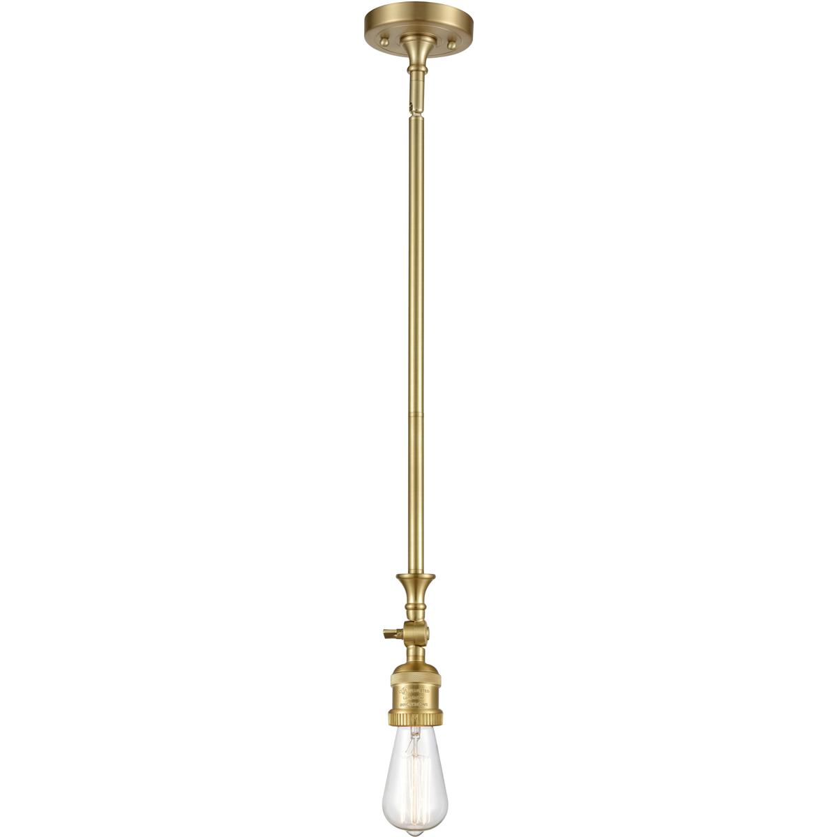 The Innovations Lighting 206-SG-G71 Franklin Restoration Bell is a single-bulb mini pendant ceiling light from the Franklin Restoration collection that combines vintage bell-shaped glass with a satin gold finish. Designed by Bruno Marashlian, the fixture measures 8 inches in diameter and accommodates up to 100-watt E26 incandescent bulbs, though it also accepts LED, fluorescent, and halogen alternatives. The hardwired system includes one 6-inch and two 12-inch adjustable stems, allowing installation heights from 11.63 inches to 44.63 inches.