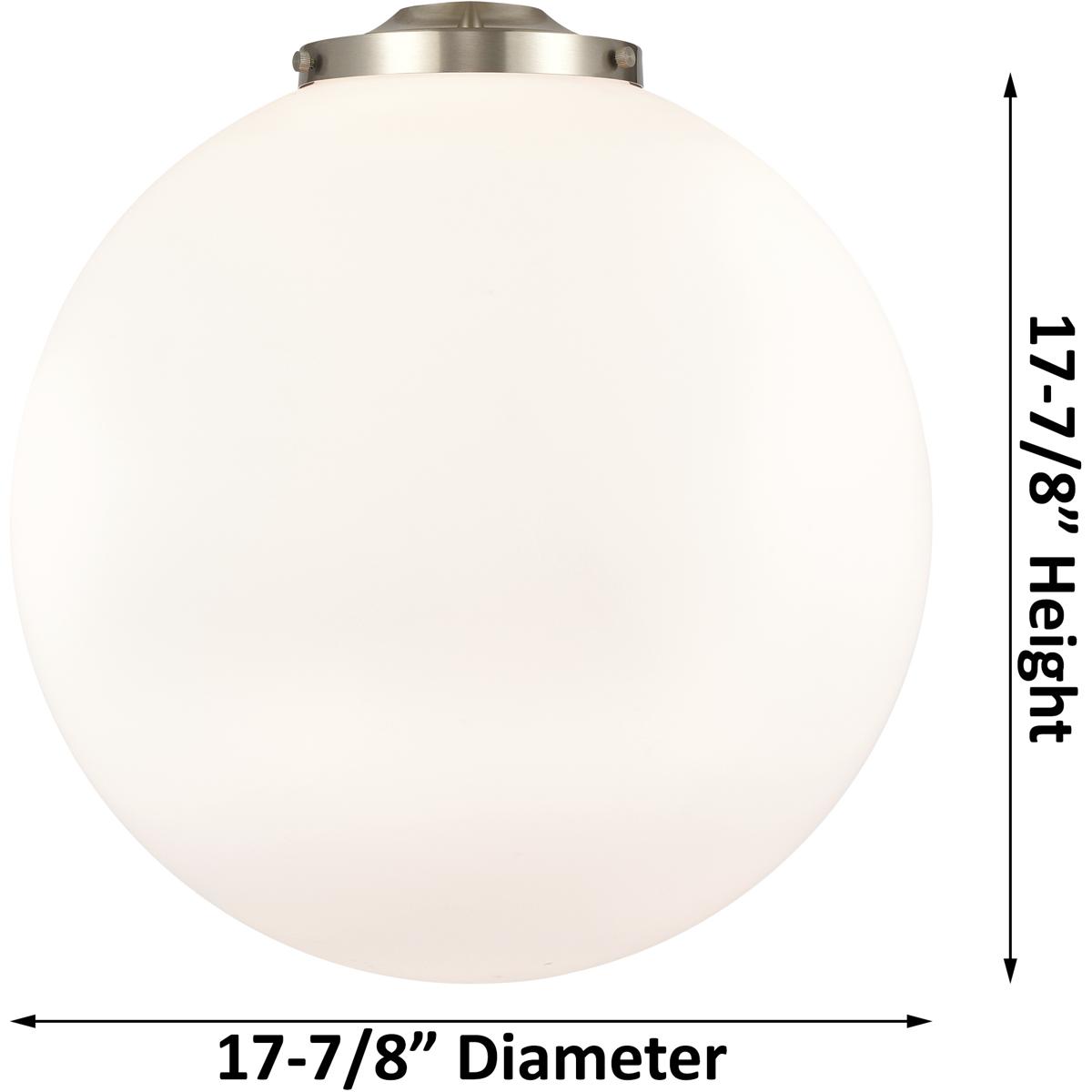 - 18-inch matte white glass shade — diffuses light evenly across 18-inch diameter with industrial-farmhouse aesthetic