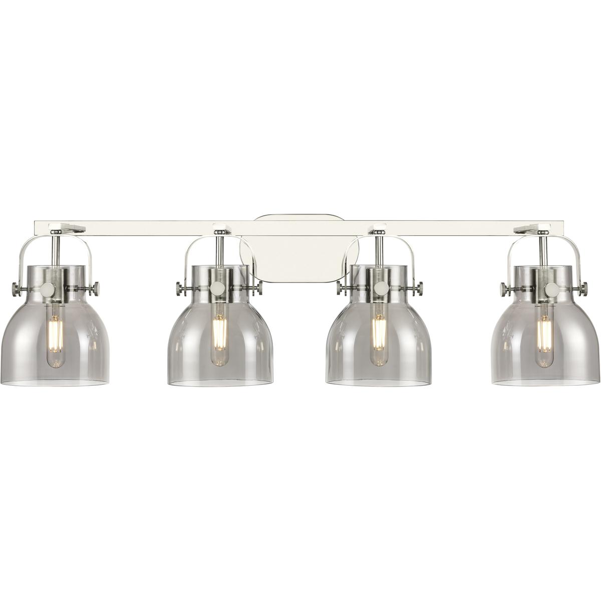 What is Innovations Lighting 423-4W-PN-G412-6SM Pilaster II Bell 4 Light 36.5 inch Polished Nickel Bath Vanity Light Wall Light in Light Smoke Glass?
