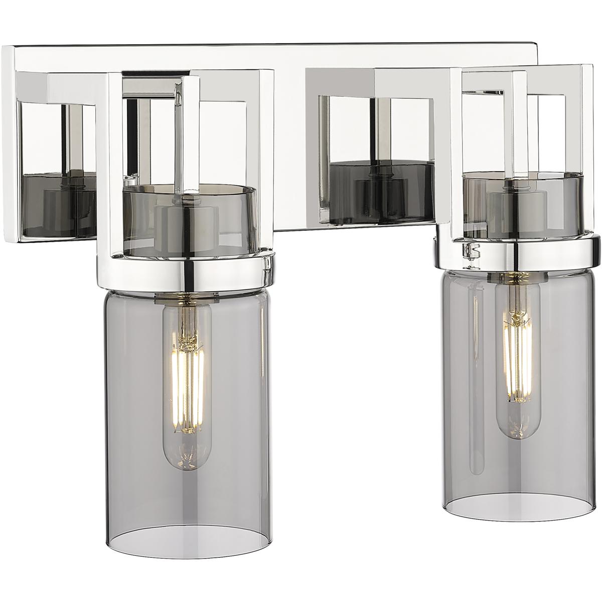 Innovations Lighting 426-2W-PN-G426-8SM Utopia 2 Light 15 inch Polished Nickel Bath Vanity Light Wall Light in Plated Smoke Glass is a damp-rated, vertically installable fixture with polished nickel finish and smoke glass, priced at $193.60. Ideal for modern bathrooms needing balanced, stylish lighting.