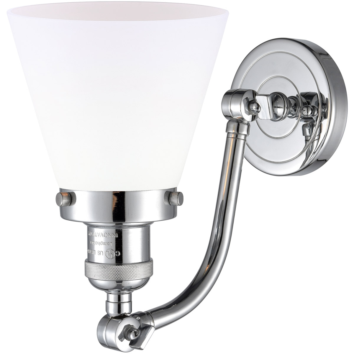 About Innovations Lighting Innovations Lighting 515-1W-PC-G61 Franklin Restoration Small Cone 1 Light 7 inch Polished Chrome Sconce Wall Light in Matte White Glass, Franklin Res