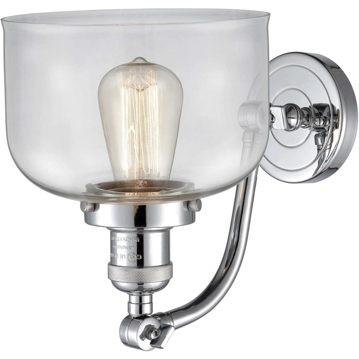 About Innovations Lighting Innovations Lighting 515-1W-PC-G72-LED Franklin Restoration Large Bell LED 8 inch Polished Chrome Sconce Wall Light in Clear Glass, Franklin Restorati