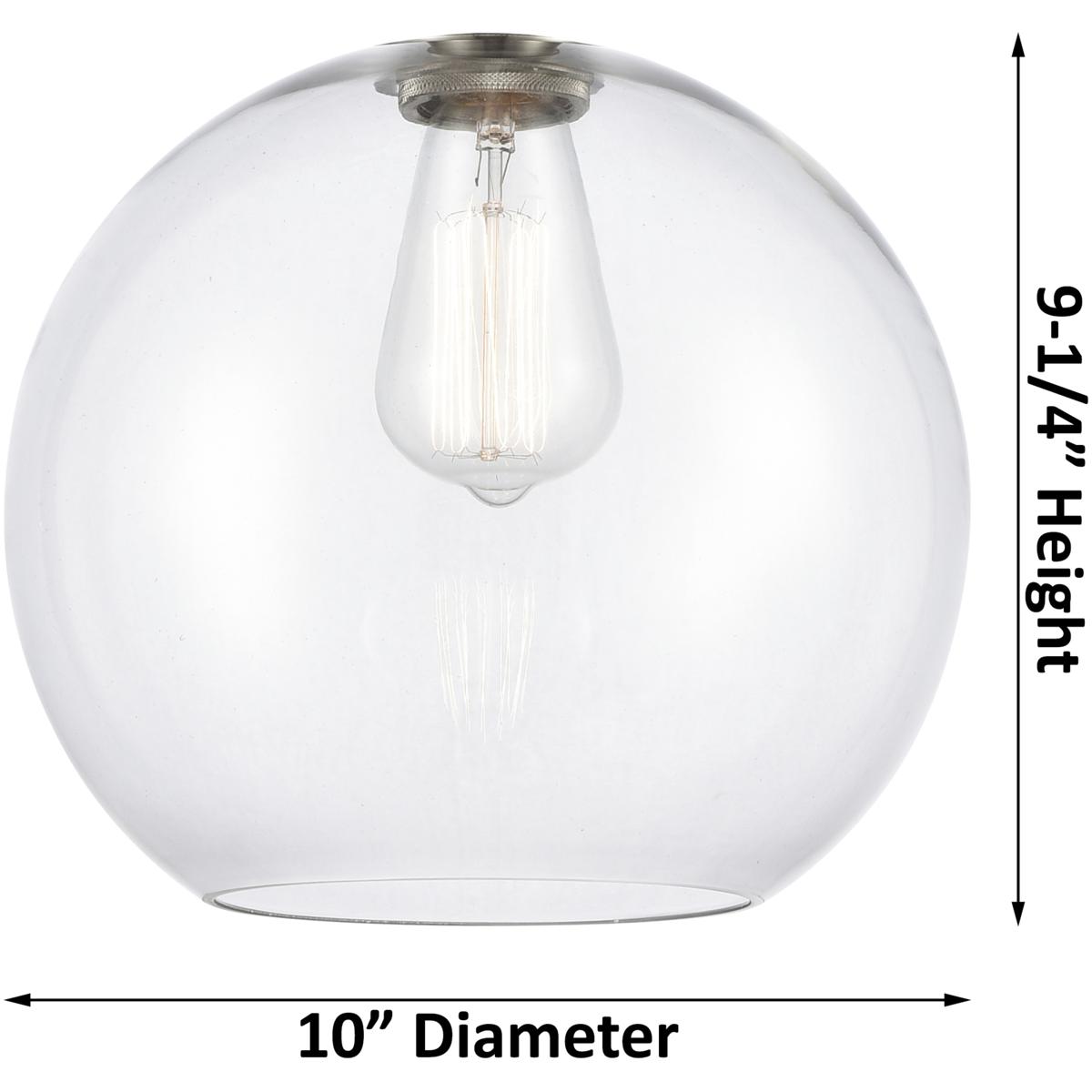 - Mixed-material construction — combines steel and cast brass with a matte black finish and clear glass Athens shade measuring 10 inches in diameter