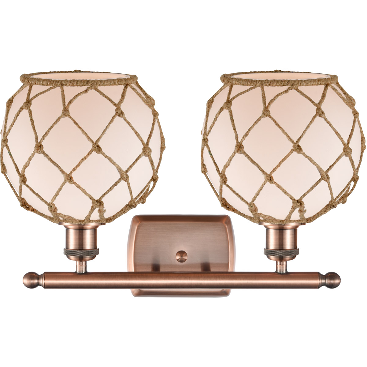 Innovations Lighting 516-2W-AC-G121-8RB-LED Ballston Farmhouse Rope LED 16 inch Antique Copper Bath Vanity Light Wall Light in White Glass with Brown is $499.40 at Lighting New York. Prices may change — click through to Lighting New York for the latest.