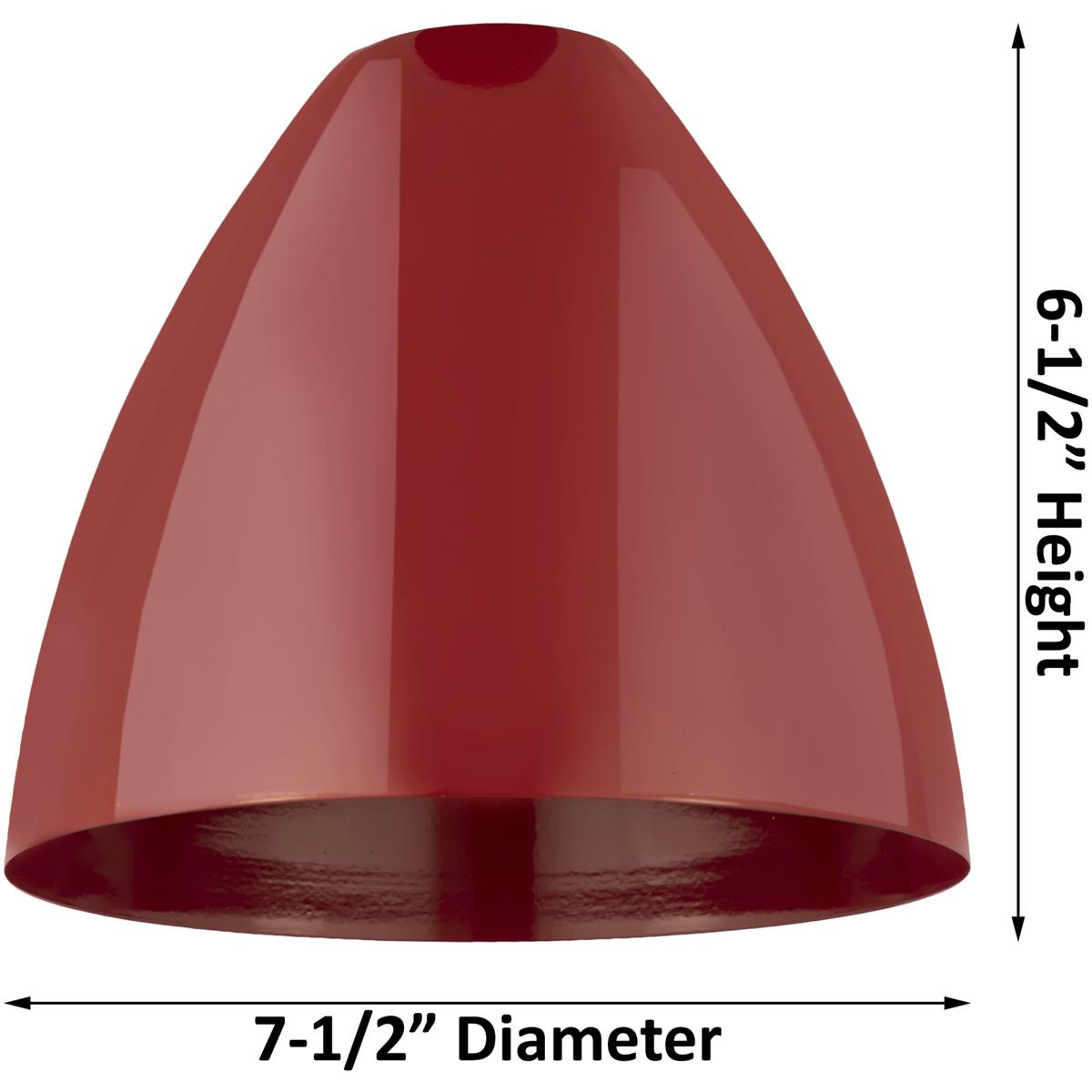 - Brushed brass finish with matte red dome shades on steel/cast brass body