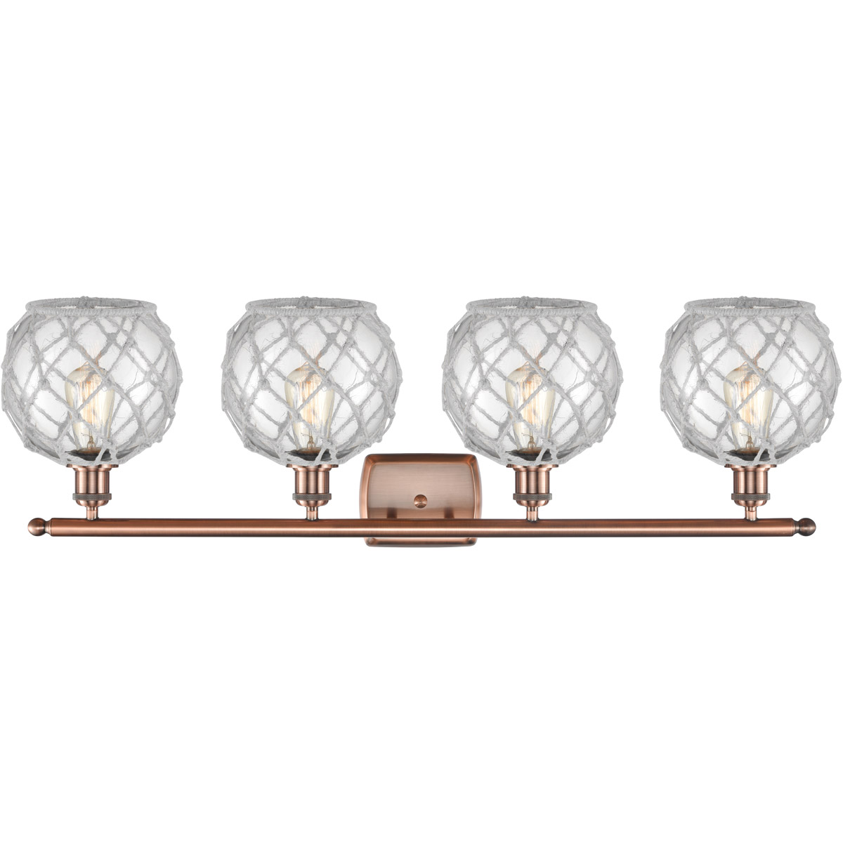 Innovations Lighting 516-4W-AC-G122-8RW-LED Ballston Farmhouse Rope LED 36 inch Antique Copper Bath Vanity Light Wall Light in Clear Glass with White is $902.00 at Lighting New York. Prices may change — click through to Lighting New York for the latest.