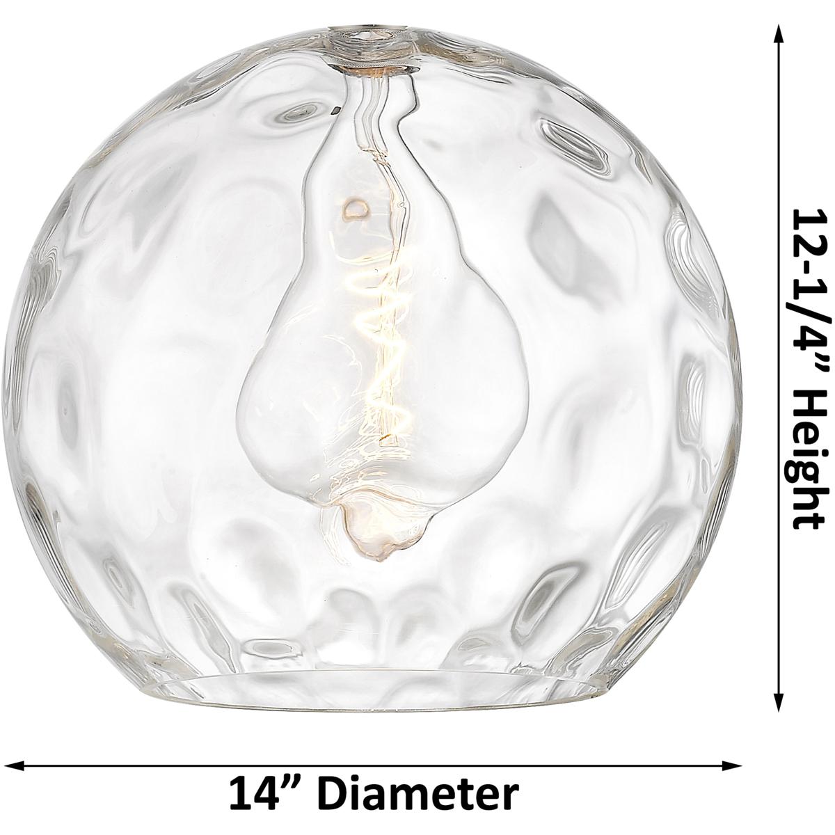 - Clear water glass shade with 13.75-inch diameter and textured surface