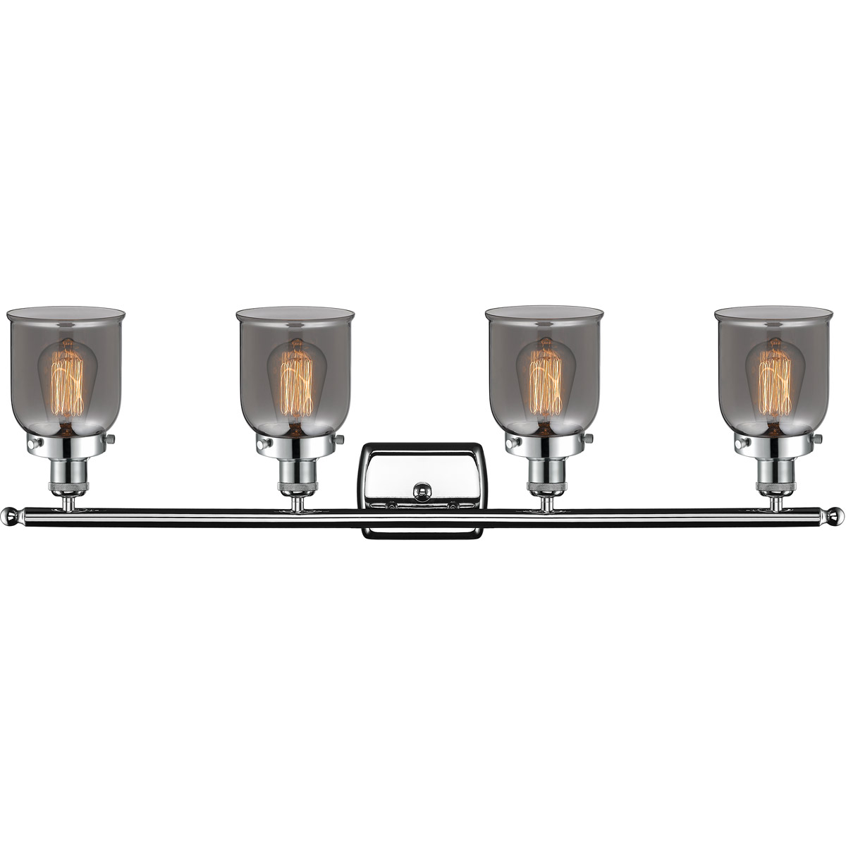 About Innovations Lighting Innovations Lighting 916-4W-PC-G53-LED Ballston Small Bell LED 36 inch Polished Chrome Bath Vanity Light Wall Light in Plated Smoke Glass, Ballston