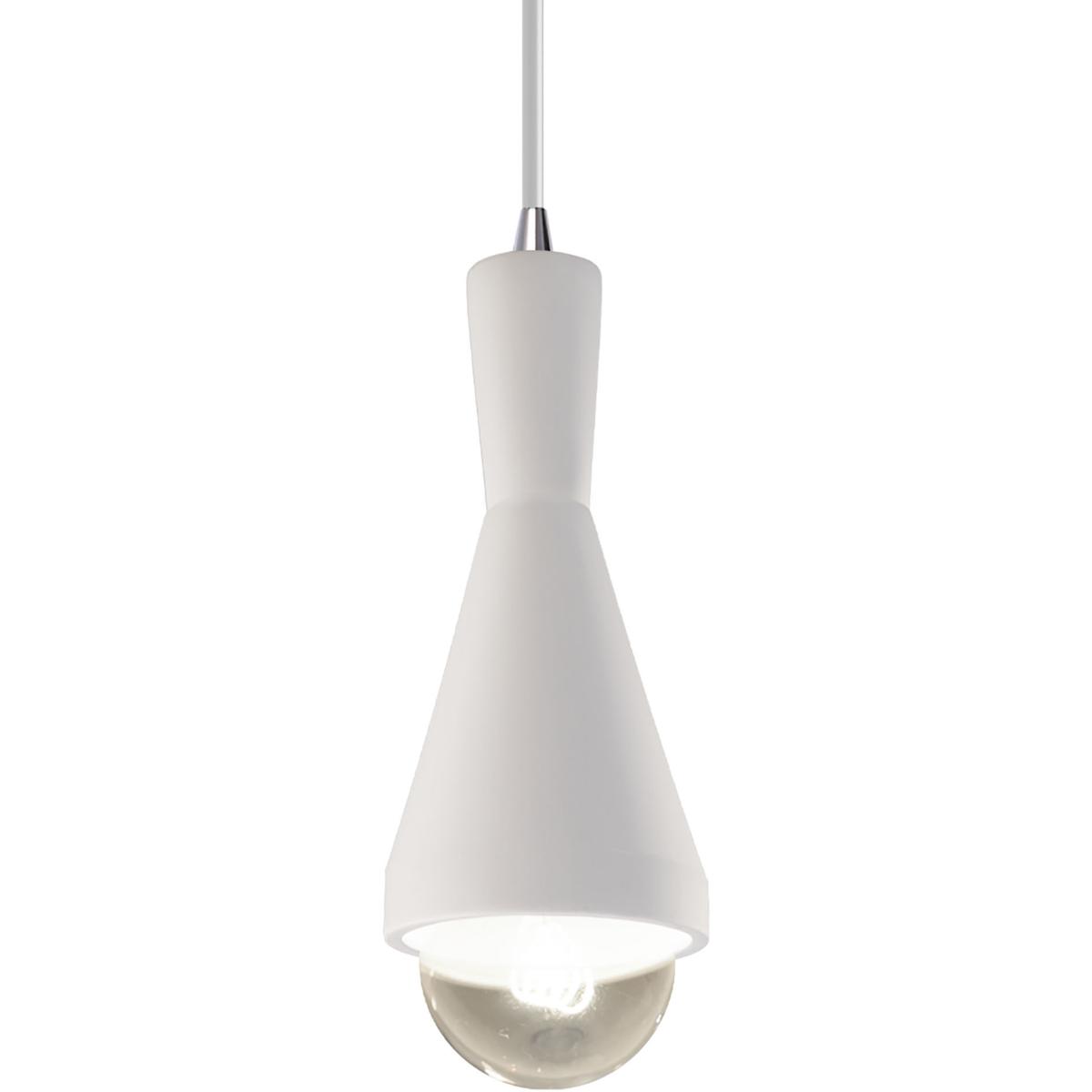 This sleek pendant ceiling light from Justice Design Group's Radiance Collection blends artisan ceramic craftsmanship with modern LED technology. Measuring 4.75 inches in width and 10.5 inches in height, it features a hand-finished bisque ceramic shade paired with a dark bronze metal base, creating a warm, inviting glow. Designed for contemporary and transitional interiors, it ships with 96 inches of white cord for flexible installation over kitchen islands, dining tables, or entryways. The integrated 9-watt LED emits 700 lumens at 3000K, offering energy-efficient, long-lasting illumination with a high 90 CRI for accurate color rendering.