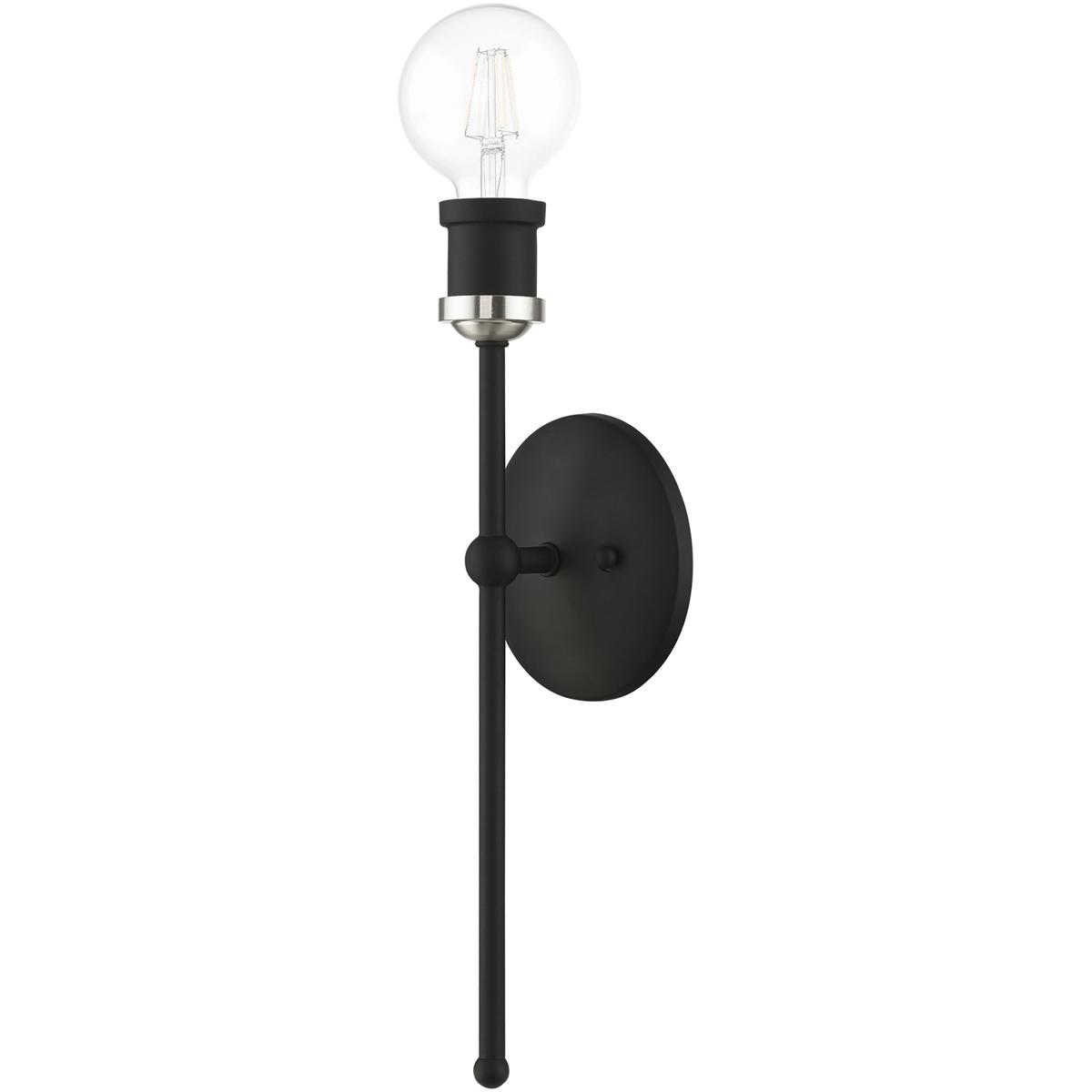 About Livex Lighting Livex Lighting 14421-04 Lansdale 1 Light 5 inch Black with Brushed Nickel Accents ADA Single Sconce Wall Light, Single