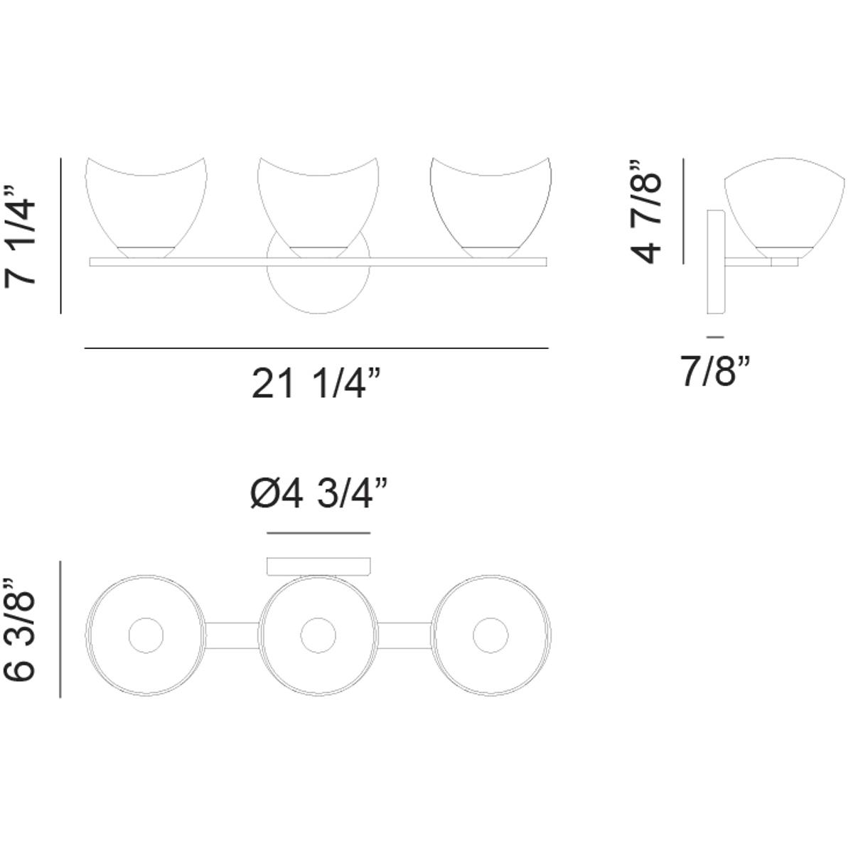 - 21.25-inch horizontal spread — width accommodates double vanities and large mirrors, with 4.88-inch center-to-center shade spacing for balanced coverage