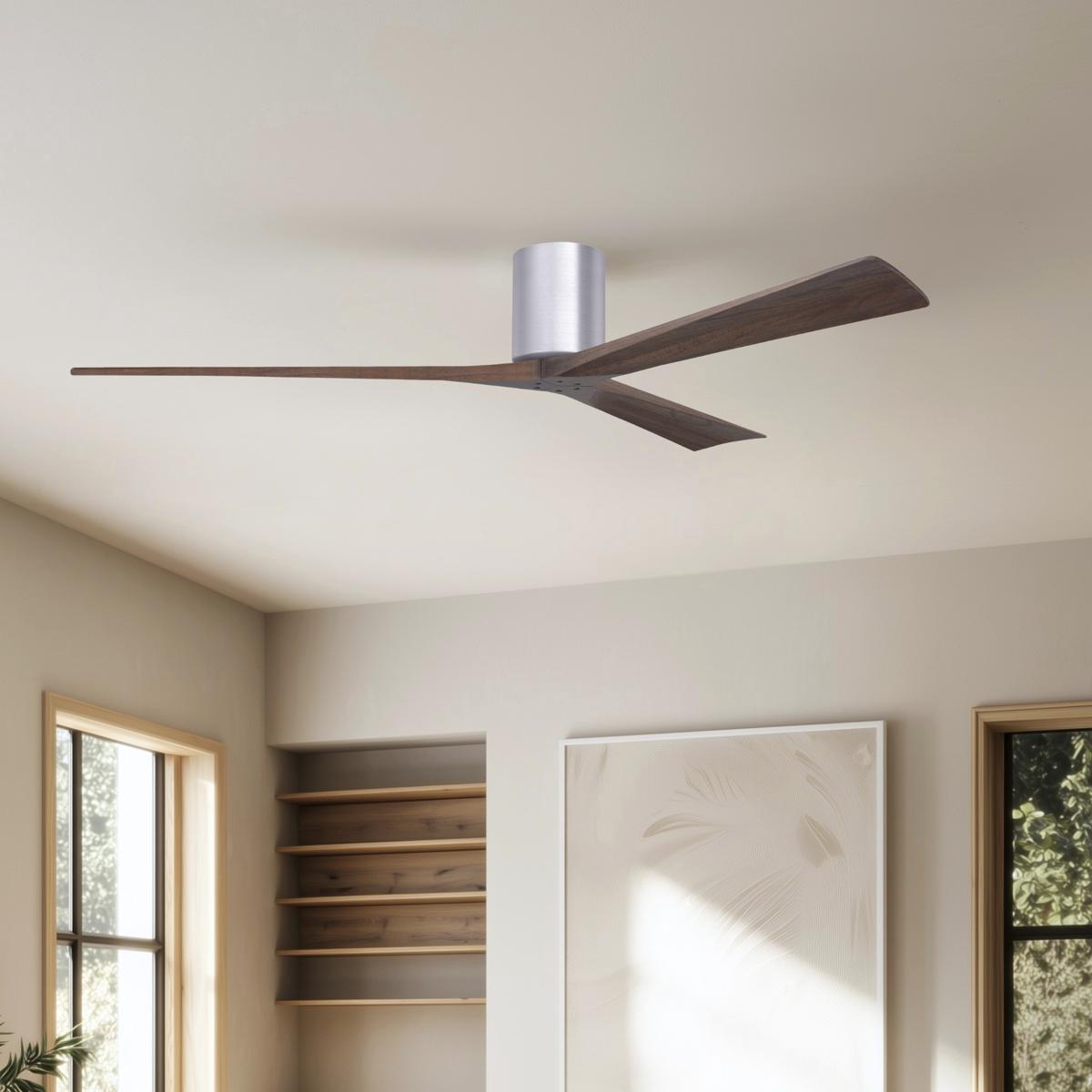 Matthews Fan Co IR3H-BN-WA-72 Atlas Irene-3H 72 inch Brushed Nickel with Walnut Tone Blades Flush Mount Paddle Fan