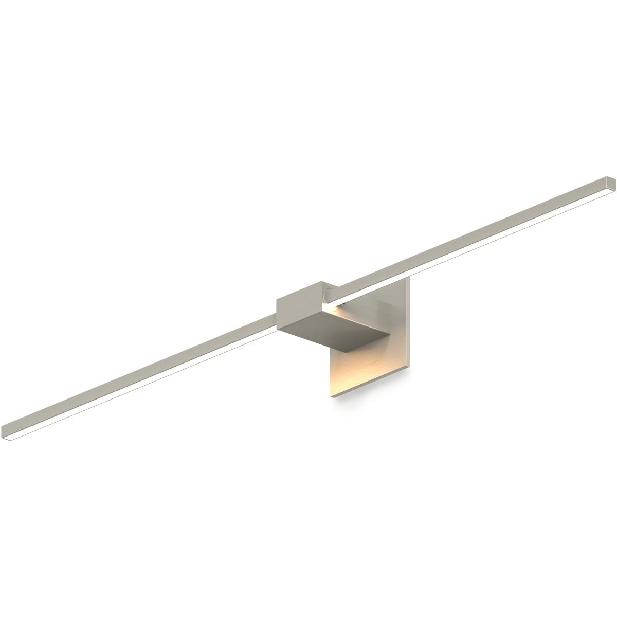 The Koncept Z-Bar Adjustable LED Wall Sconce in Brushed Nickel is a 36-inch modern wall-mounted lighting fixture designed by Kenneth Ng and Edmund Ng. It features an integrated 24-watt LED module that produces 1600 lumens at 3000K color temperature. The aluminum and acrylic construction weighs 2.03 pounds and mounts horizontally, vertically, or diagonally to illuminate artwork, frame mirrors, or serve as architectural accent lighting in residential and commercial spaces.