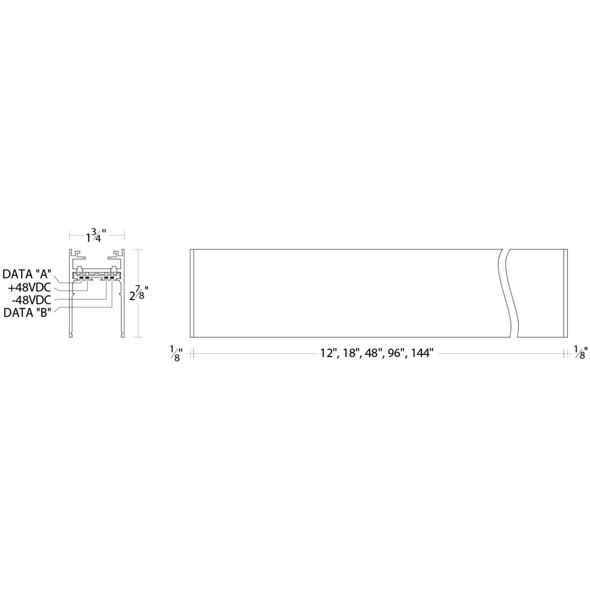 - 72-inch extruded aluminum track with solid copper alloy 48VDC power and data bus