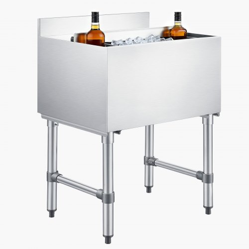 The VEVOR Commercial Ice Bin is a heavy-duty, NSF-certified stainless steel ice storage solution designed for professional and high-demand environments. With a 65.1-quart (61.6 L) max capacity and dimensions of 24 x 19 x 33 inches, this cooler cart offers ample space for ice, beverages, or cocktail prep. Built with durable 304 stainless steel and polyurethane insulation, it maintains cold temperatures for extended periods, making it a reliable fixture in bars, restaurants, pubs, and outdoor catering setups.
