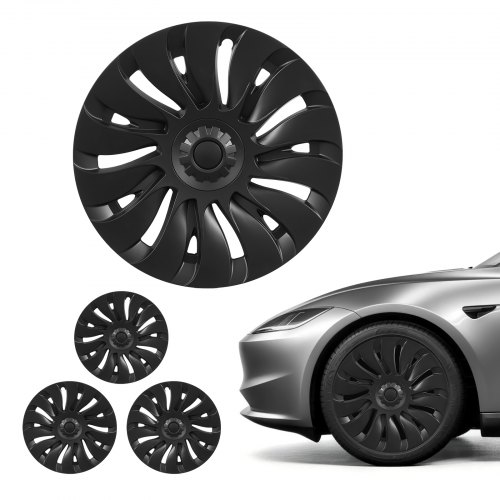 VEVOR Hubcaps Wheel Covers are a set of four 19-inch snap-on rim covers designed specifically for the 2021–2024 Tesla Model Y. Made from durable ABS plastic, these matte black hubcaps replicate the OEM 14-spoke design, offering a factory-fresh appearance. Each cover measures φ20.7 x 3.3 inches (φ525 x 85 mm) and weighs approximately 7.9 lbs total for the set. They provide full coverage to protect alloy wheels from curb damage, road debris, and weathering while enhancing curb appeal with a sleek, uniform finish.