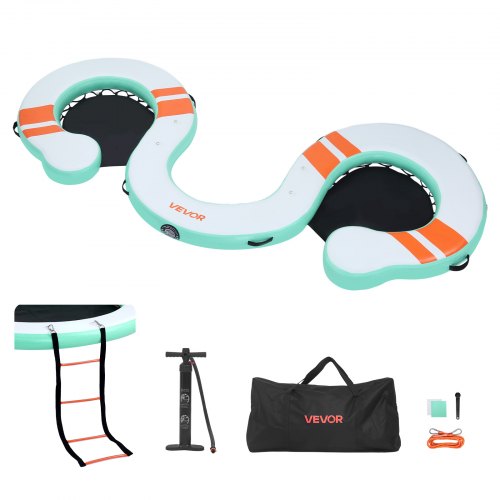 The VEVOR Inflatable Floating Dock, 15 x 6 FT is a portable, non-slip water platform priced at $291.99. Made of PVC and brushed fabric, it inflates quickly for use on lakes, pools, or oceans. Ideal for swimming, lounging, or boarding from a boat, it includes a detachable ladder and carrying bag for easy transport and storage.